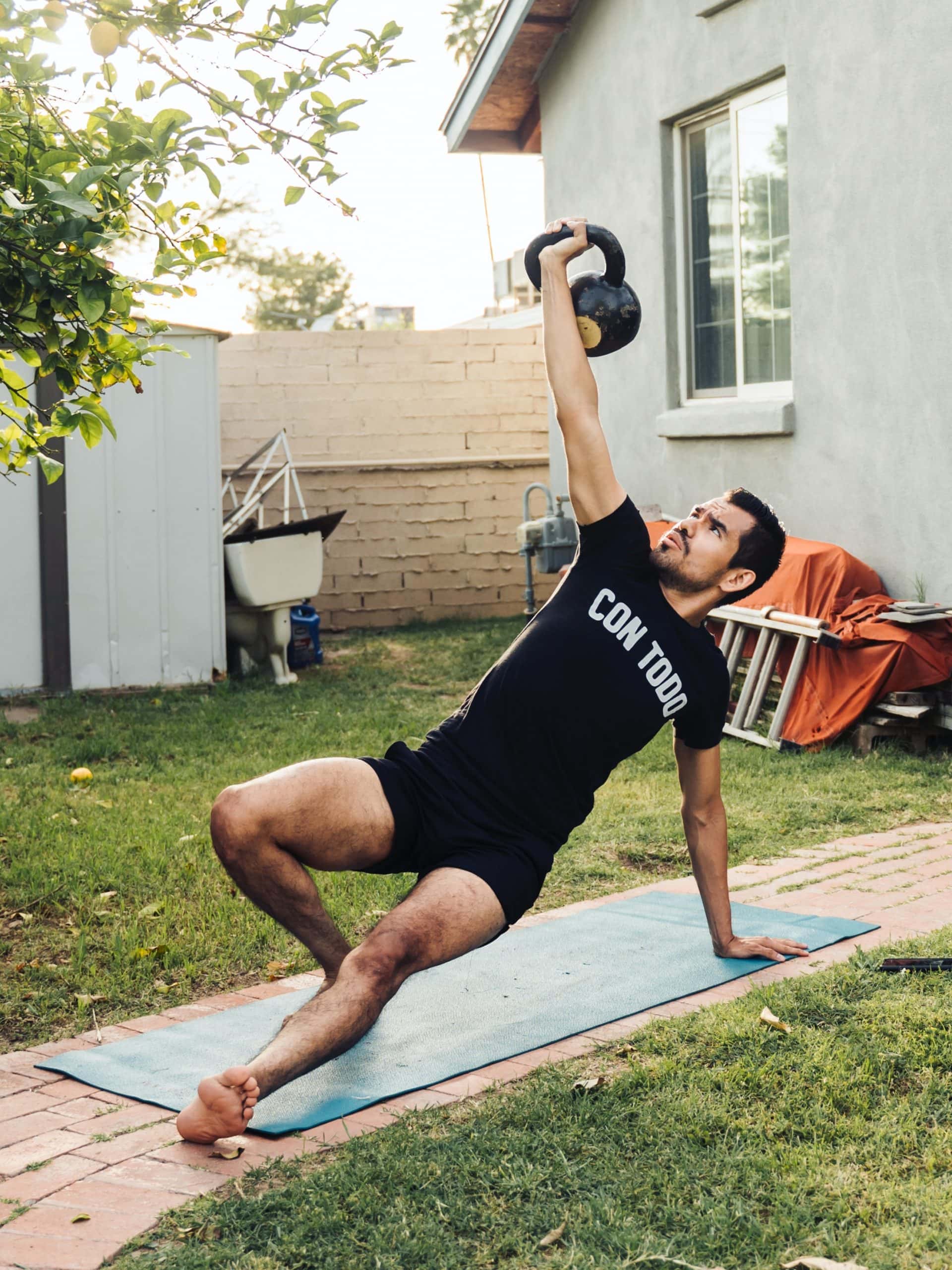 Using body weight, dumbbells, kettlebells and other forms of weight accessible to build, strengthen and tone your muscles.